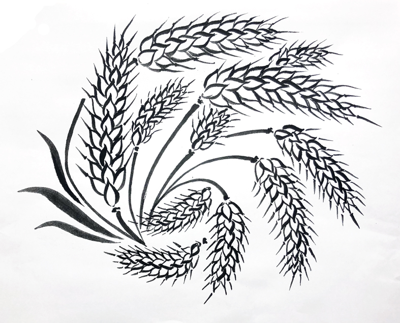 店舗ロゴの麦の穂を揮毫しました。